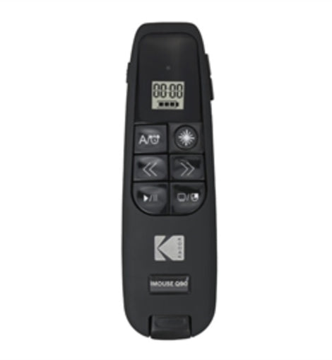 The Kodak IMOUSE Q90 is a wireless presenter with built-in laser pointer and timer. Perhaps the greatest feature about the IMOUSE Q90 helps you keeping track of how much time you have left in your presentation. The motion sensor allows waving the mouse in air and the mouse pointer will move according to the waving motion, enabling you to have computer control from anywhere in the room. It's power laser pointer is bright and easy to see, providing more engagement between you and the audience. Last but no least, its compatibility with multiple different popular software for presentation makes it a great presenting peripheral companion