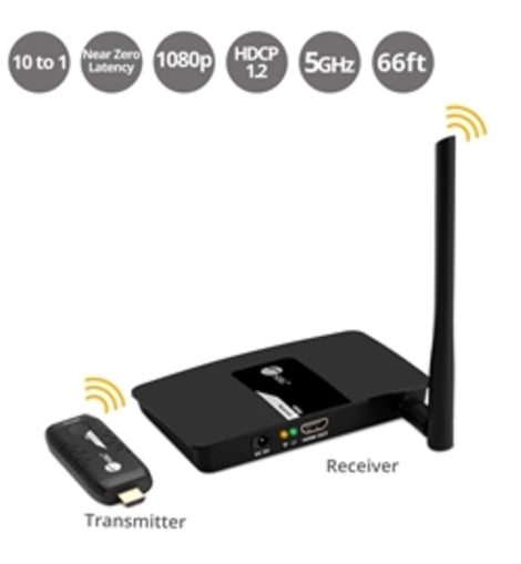 o Wireless 5G technology reliably extends HDMI signals up to 66 feet to a remote HDMI display