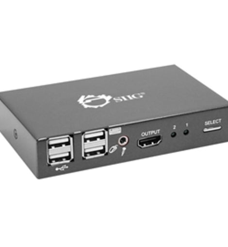 SIIG's 2x1 USB HDMI KVM Switch - 4Kx2K allows you to share an UHDTV or display, USB keyboard and mouse with microphone between two USB/HDMI computers. It comes with two extra USB 2.0 ports with over-current detection and protection for additional device connections. It supports resolutions of up to 4Kx2K@30Hz with 36-bit Deep Color and PC's WUXGA 1920 x 1200 with video bandwidth up to 2.25 Gb/s, Dolby True HD and DTS HD Master Audio formats. Also, it features metal housing for better RF shielding and allows user to switch between devices via front push button or hotkey.