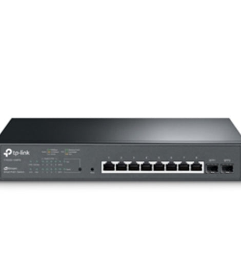 TP-Link JetStream Gigabit Smart Switch T1500G-10MPS is equipped with 8 gigabit RJ45 ports and 2 SFP slots, all RJ45 Ports support the 802.3af/at (PoE+) standard with total PoE power budget of 116W and useful PoE power management features. The switch provides high performance, enterprise-level QoS, useful security strategies and rich layer 2 management features.