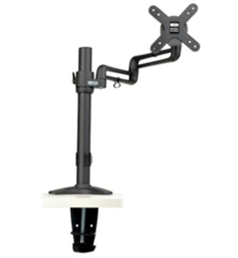 Durable clamp attaches to most flat surfaces up to 3.5 inches thick with a firm grip. Swivel arm supports up to 22 pounds. The durable all-metal frame with scratch-resistant powder-coated finish tolerates frequent handling and blends with any decor. Mounting hardware is included. Conforms to VESA-compliant displays with any of the following mounting hole patterns: 75 x 75 mm, 75 x 100 mm, 100 x 75 mm and 100 x 100 mm.