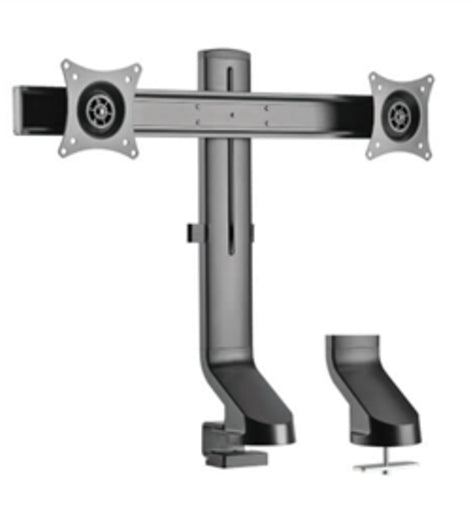 This monitor-arm desk mount adjusts independently to optimize viewing angles and improve ergonomics. To minimize screen glare, reduce eye fatigue and increase viewing comfort, the mount features -10? to +10? tilt, 10? swivel and 180? rotation for position your screens in portrait or landscape orientation. Easy screen adjustment lets you quickly find just the right angle without interrupting your workday. The slim design makes this dual-monitor mount ideal for sit-stand workstations.
