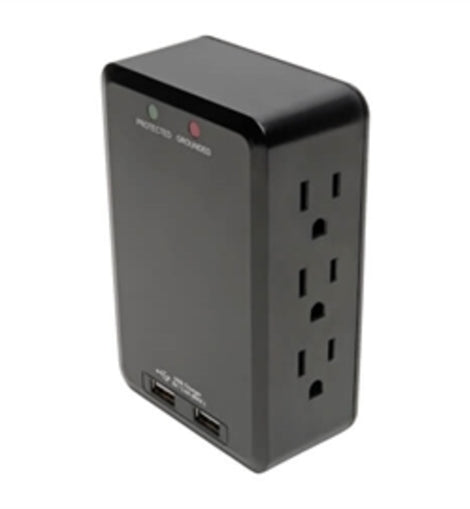Plug your PC, printer, scanner, router, modem, television, stereo receiver and other home/office electronics into six NEMA 5-15R outlets to protect them against dangerous surges, spikes and line noise. The TLP6SLUSBB plugs directly into a wall outlet (no cord required), and three outlets are included on either side. This allows you to install the surge protector behind furniture and other tight spaces without equipment power cords getting it the way. It's small enough to take with you for plugging in devices at the office or on the road.