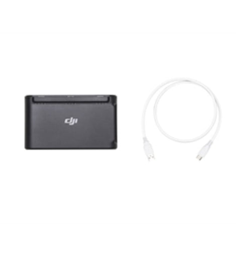 The Two-Way Charging Hub can charge up to three batteries in sequence. It takes 270 minutes to charge all batteries with a DJI 18 W USB charger. It can also be used to store and transport batteries, and even as a power bank to charge your mobile device or remote controller.