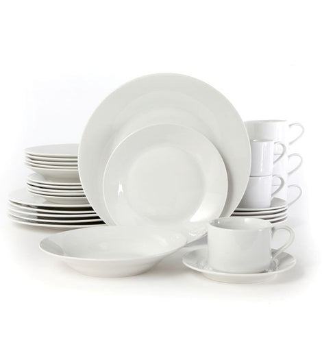 With this Gibson Rosendal Dinnerware Set, you can serve an elegant feast for your family and guests. Stylish and functional, this delicate porcelain tableware set comes in a beautiful white color. This subtle, elegant and timeless dish set will nicely complement a wide variety of decors and home settings. Each plate is microwave safe for quick heating and dishwasher safe for easy cleaning.