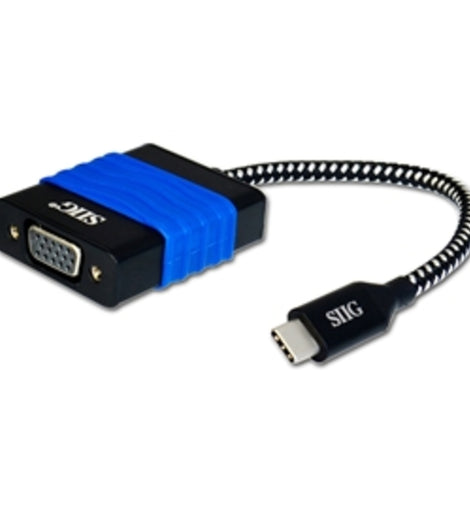 SIIG's USB Type-C to VGA Video Cable Adapter easily adds a VGA port to your USB Type-C enabled system. It allows you to instantly connect a VGA display via a USB Type-C port with DisplayPort signal from computers such as the MacBook(R) and Chromebook Pixel(TM). This adapter supports 1080p Full HD video resolution to deliver crystal clear picture quality. Unique USB Type-C interface allows plugin in any orientation, enabling smooth and hassle-free connection. Compact and lightweight design makes this USB Type-C video adapter the perfect on-the-go accessory to extend your display screen or for use as an alternative display in presentation or entertainment.