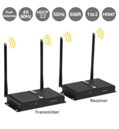 o Wirelessly transmits 4K signals with stereo audio to a distant HDMI display up to 200 meters