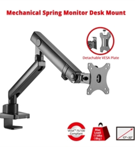 o Premium quality adjustable spring assisted articulating monitor arm provides smooth, precise and effortless monitor viewing angle and height adjustment