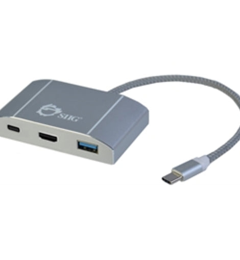 SIIGs USB 3.1 Type-C Hub with HDMI PD Charging Adapter 4K Ready expands a single USB C-port (with DisplayPort signal and power delivery PD protocol) from your notebook or laptop computer to multi-function outputs with USB hub, HDMI and USB charging port. It instantly adds a USB hub with three ultra-fast 5Gb/s USB Type-A ports, enabling you to connect multiple peripheral devices simultaneously. The built-in HDMI port allows you to connect your computer to a HDMI display or TV and supports Ultra HD 4Kx2K resolution to deliver stunning and crystal clear images/videos. It also includes a USB Type-C power delivery charging port to let you keep your computer fully powered. This plug-n-play multi-functional adapter is compact and lightweight to travel with no external power adapter is needed. It is an excellent solution to help you expand your computers connectivity to increase efficiency and productivity.